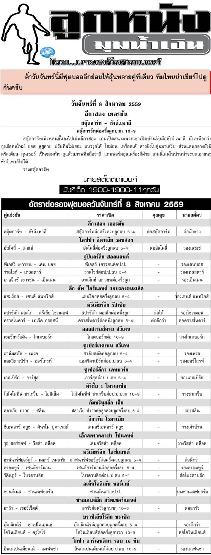 RE : สปอร์ตพูล ฉบับวันที่ 9 ส.ค. 2559
