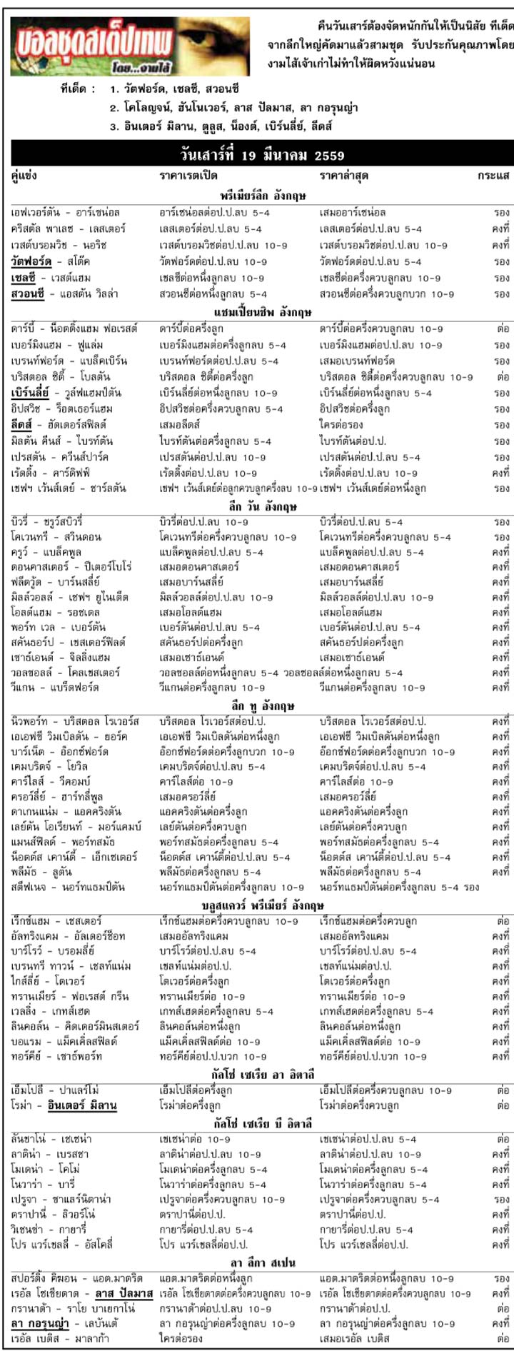 RE : สปอร์ตพูล ฉบับวันที่ 19 มี.ค. 2559